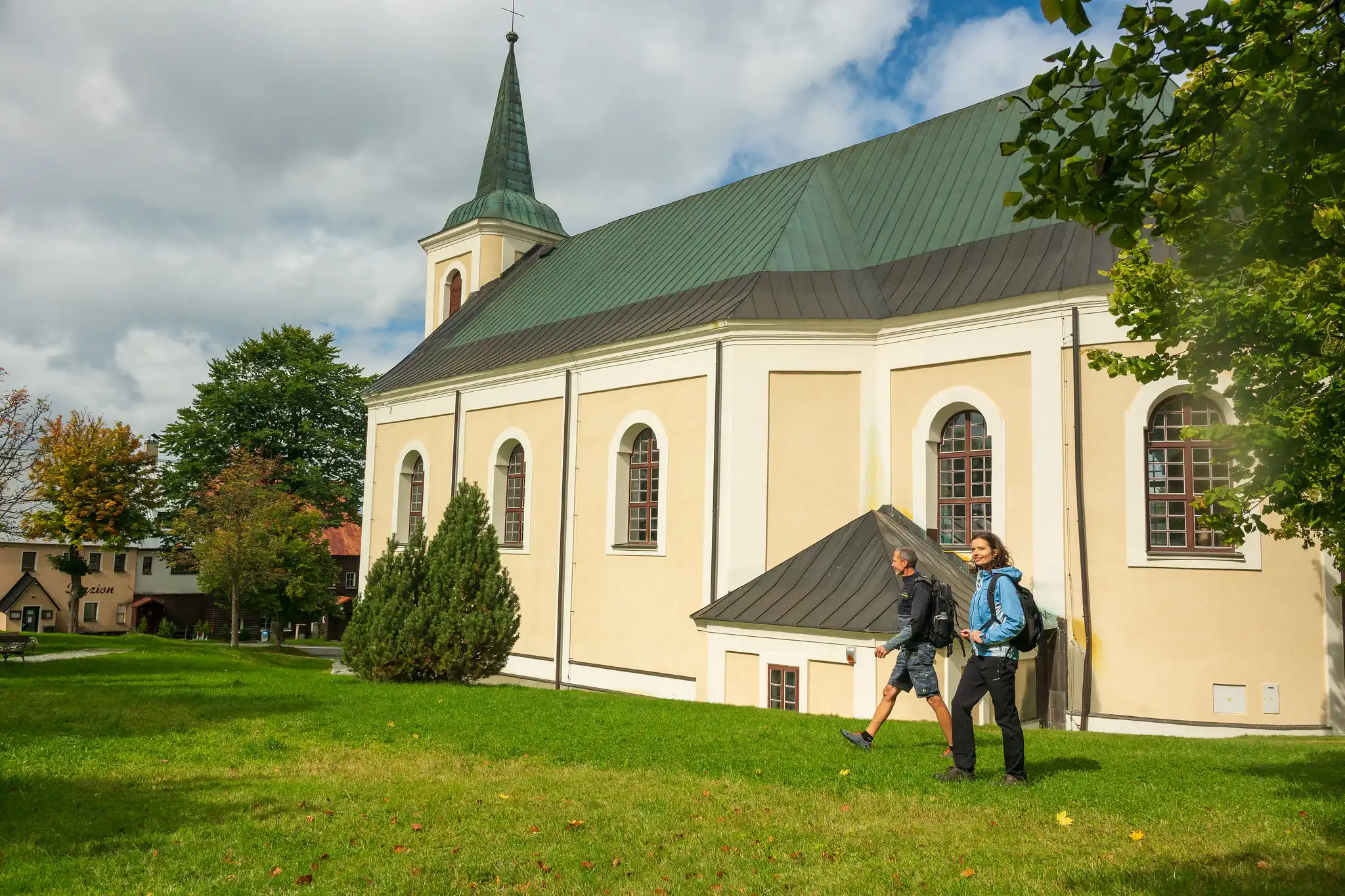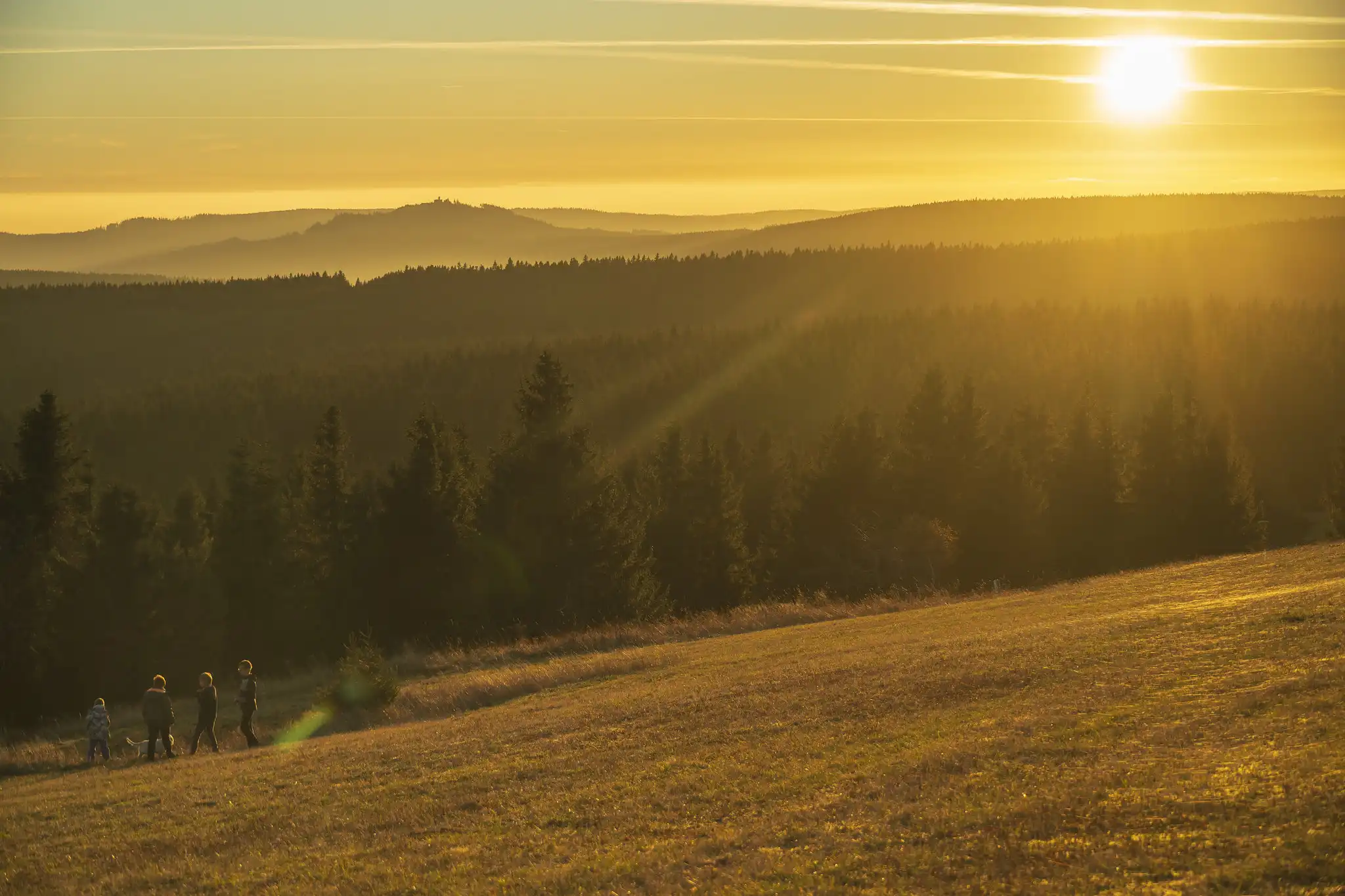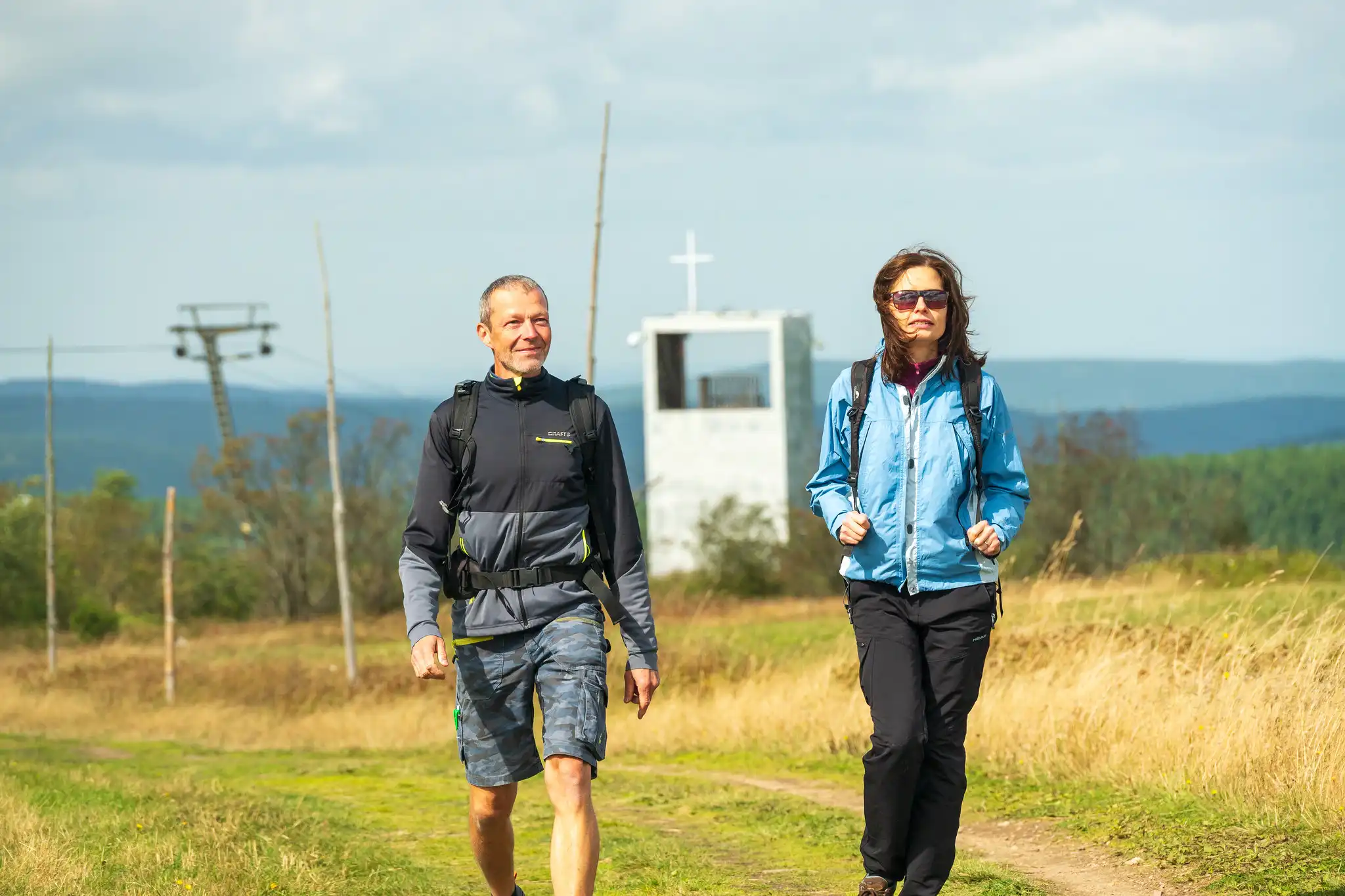Boží Dar je nejvýše položeným městem střední Evropy. Vyrazíme směrem ke hřbitovu a zde se napojíme na Ježíškovu cestu. V lese překročíme hranice a po nějaké době projdeme saskou obec Tellerhäuser. Po lesní cestě dojdete tzv. Kaffenberskou cestou až k dolu Johannes, nejkrásnější hornické památce v českém Krušnohoří. Prohlídka trvá něco přes hodinu. Po Kaffenberské cestě se vrátíme zpět, a po naučné stezce přes fotogenické Božídarské rašeliniště se pohodlně vrátíme zpět na Boží Dar.